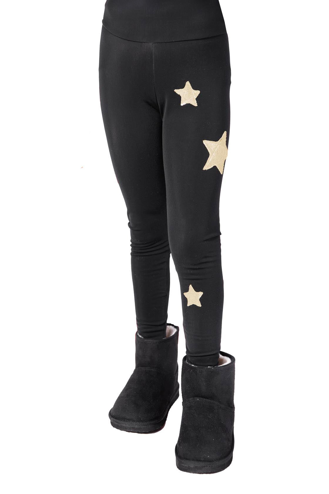 Girls' fleece-lined lycra leggings (dark on the inside) with applied gold and silver stars, high waist.