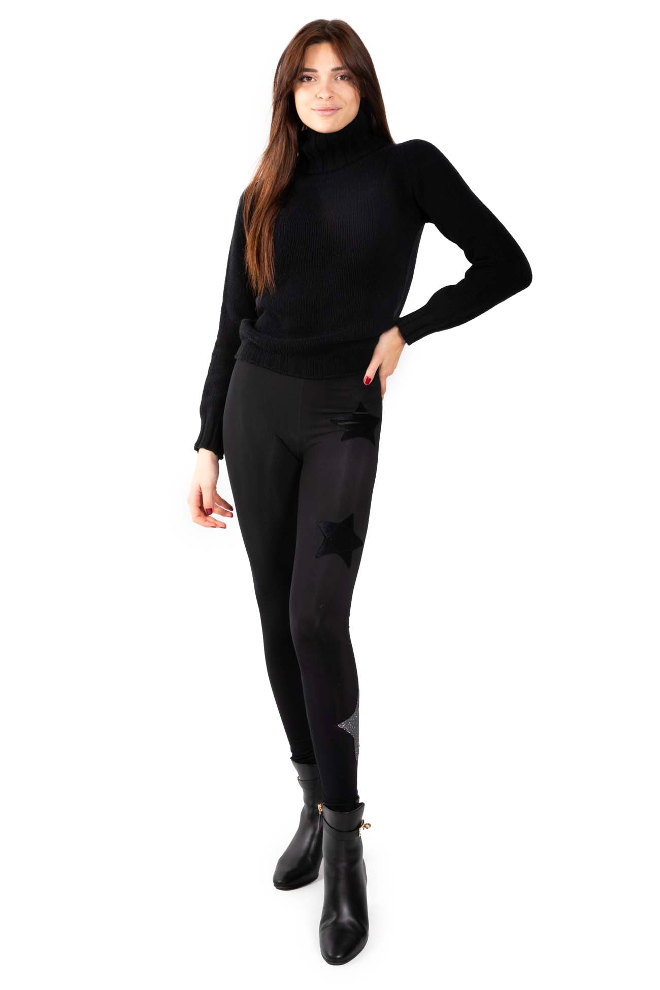 Leggings in black brushed lycra on the inside, details with black velvet stars with lurex and silver, also suitable for winter days.