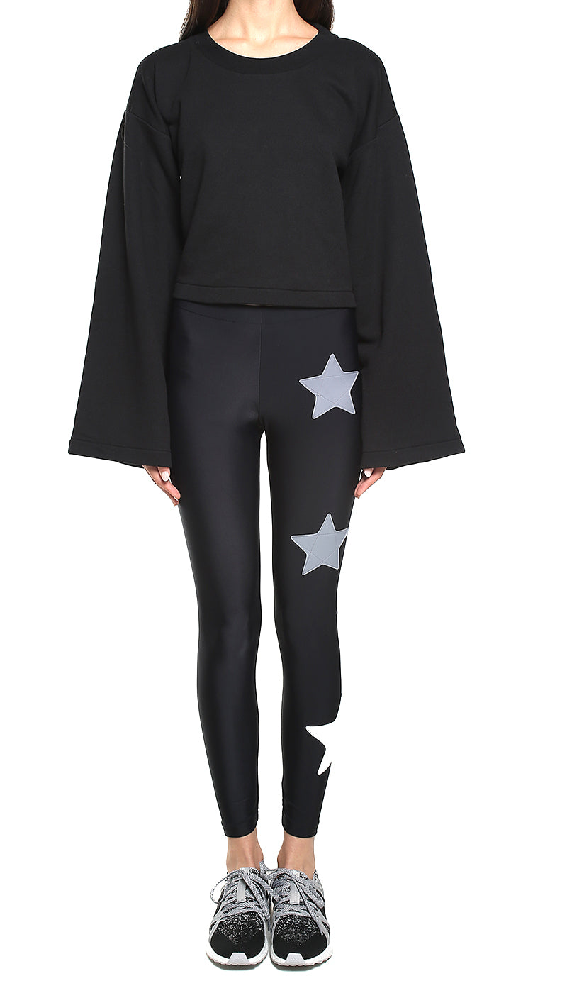 Black lycra leggings with light gray and silver applied stars