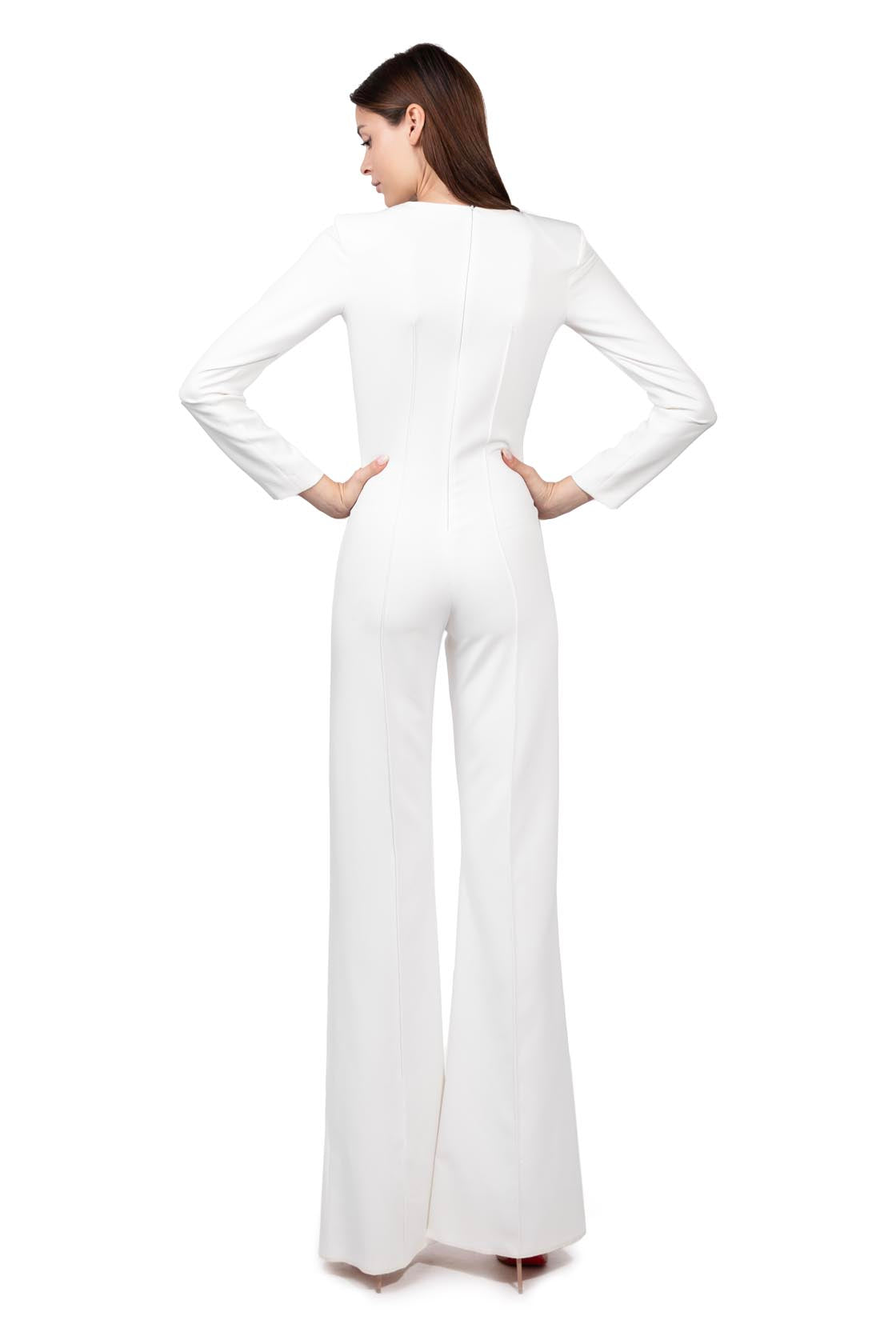 The Grace jumpsuit, delicately fitted at the waist and flowing at the bottom with its bell-bottom trousers, is a versatile jumpsuit suited for all women with character.